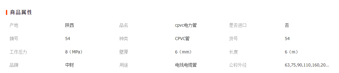 中財 cpvc電力管 電線電纜保護套管 cpvc電力保護管 現貨銷售